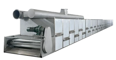 Ленточная сушилка используется для массового производства листового или нарезанного кубиком и полосками, или гранулированного материала с хорошей воздухопроницаемостью: